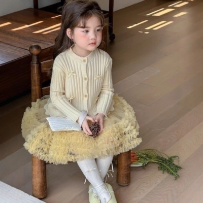 - [빠른수입] 리본가디건옐로튜튜치마셋
