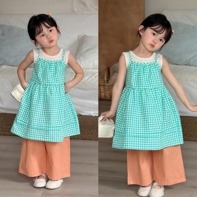 - [빠른수입] 그린체크티오렌지바지셋