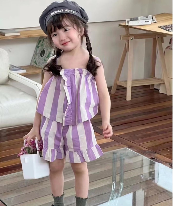 - [수입] 핑크꽃멜빵바지세트 (바로배송)