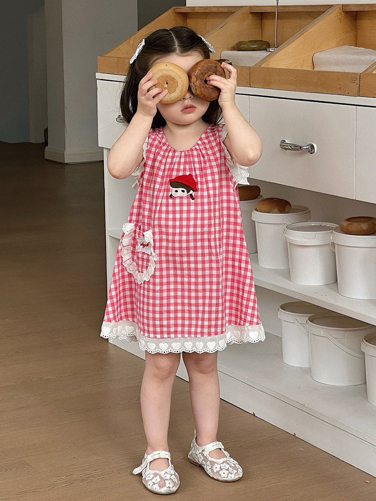 레드체크소녀원피스