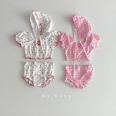 마이베베.프릴비키니수영복(상의+하의+모자SET)